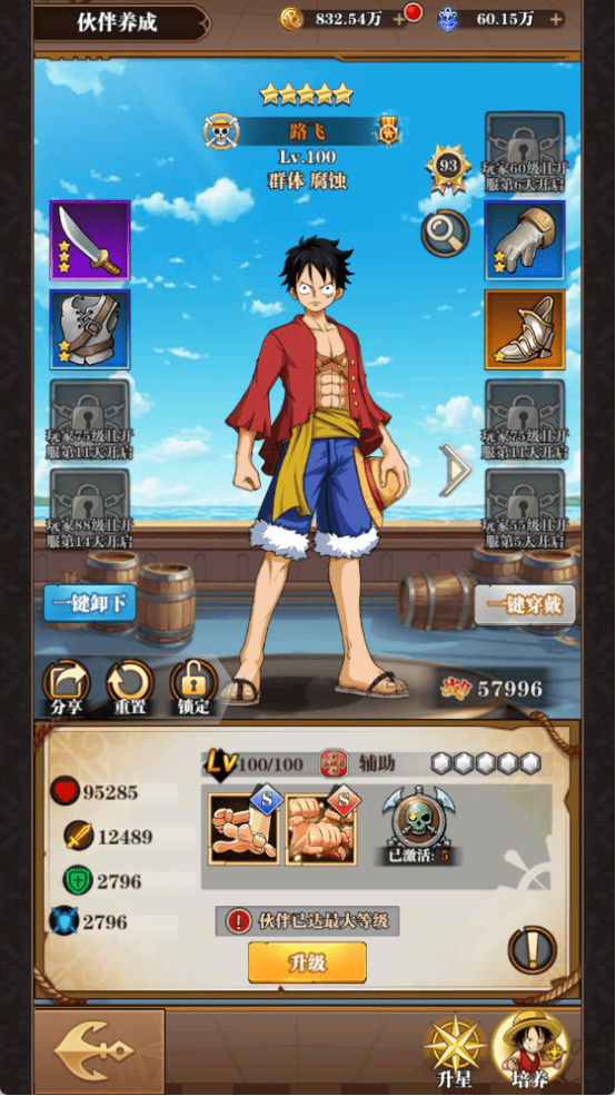 在卡牌的培養(yǎng)過(guò)程中,主要消耗的資源包括【英雄經(jīng)驗(yàn)】和【貝利】。通過(guò)不斷地使用這些資源,卡牌角色的等級(jí)會(huì)逐漸提升,從而獲得更強(qiáng)的屬性和技能效果。當(dāng)卡牌角色達(dá)到一定等級(jí)后,單純的經(jīng)驗(yàn)積累已不足以支撐其進(jìn)一步成長(zhǎng)。此時(shí),需要借助【突破石】來(lái)進(jìn)行升星。當(dāng)角色到一定等級(jí)后還會(huì)開(kāi)放專屬穿戴等功能強(qiáng)化英雄。